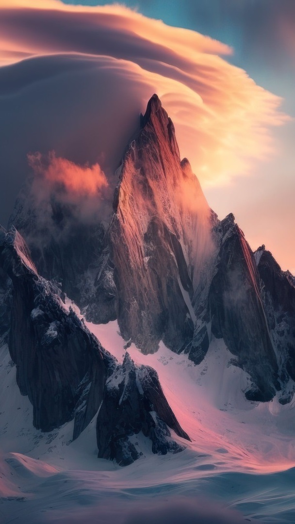 Edytor tapety: Chmury nad ośnieżonymi górami