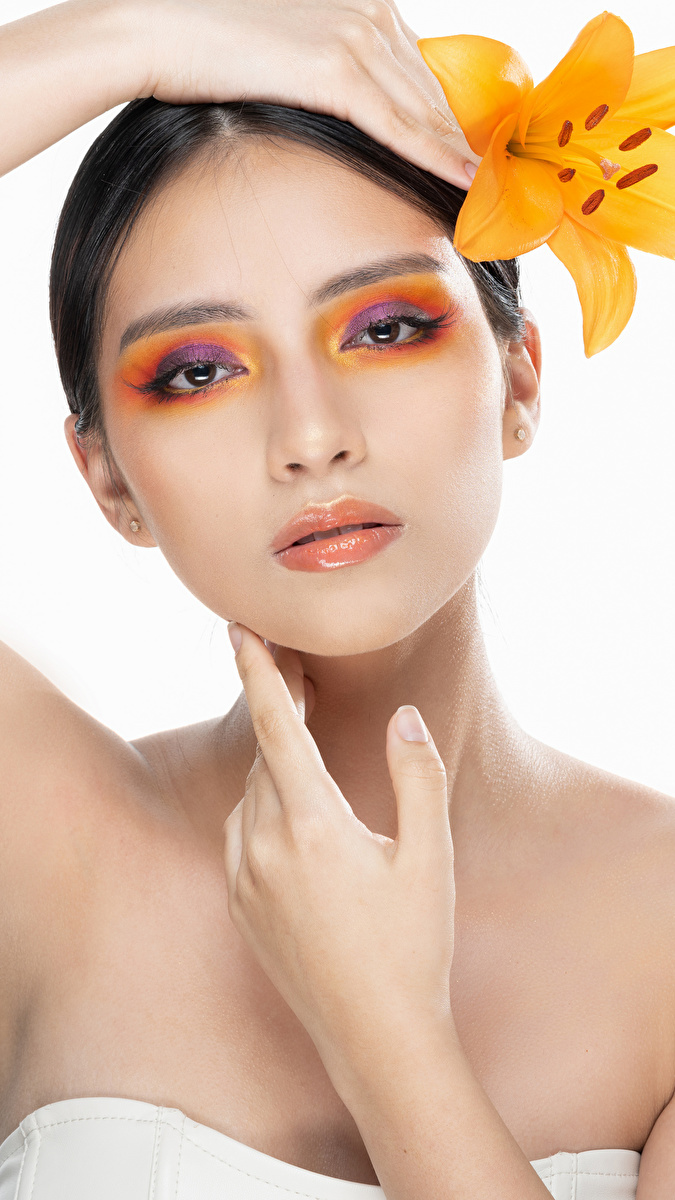 Edytor tapety: Kobieta z lilią we włosach