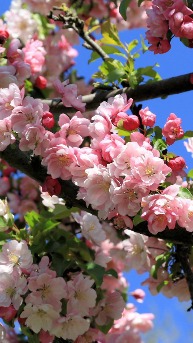Edytor tapety: Gałązki kwitnącej jabłoni na tle nieba