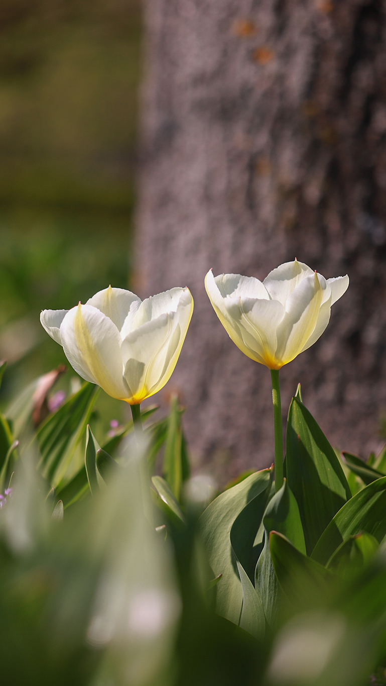 Edytor tapety: Rozświetlone białe tulipany