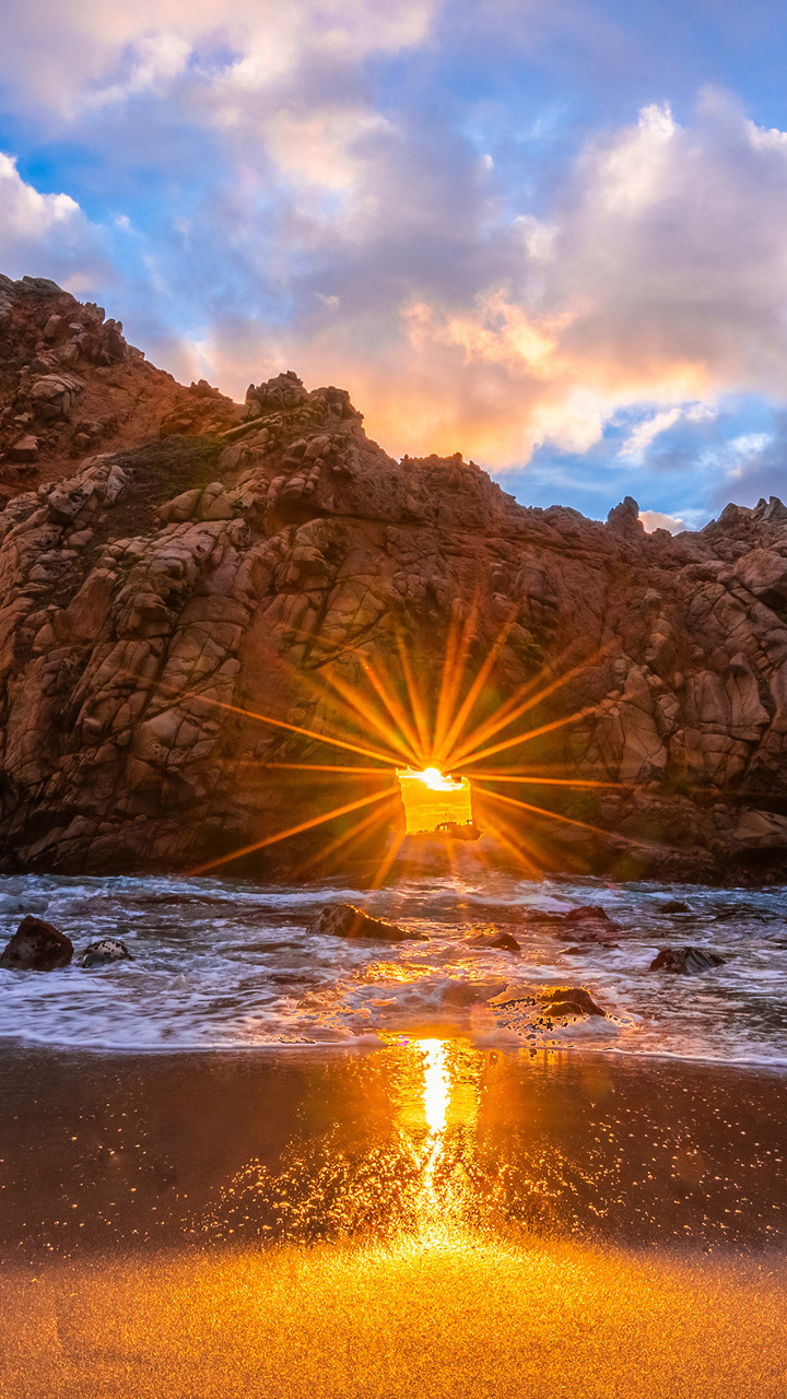 Edytor tapety: Skała Keyhole Arch w promieniach słońca