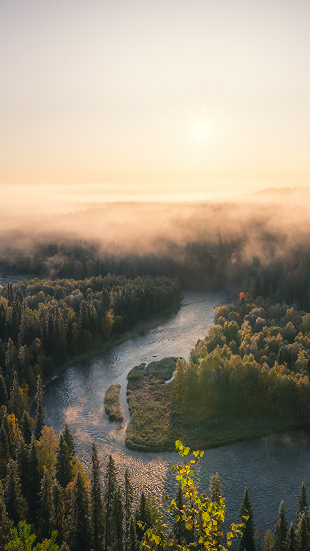 Edytor tapety: Mgła nad krętą rzeką