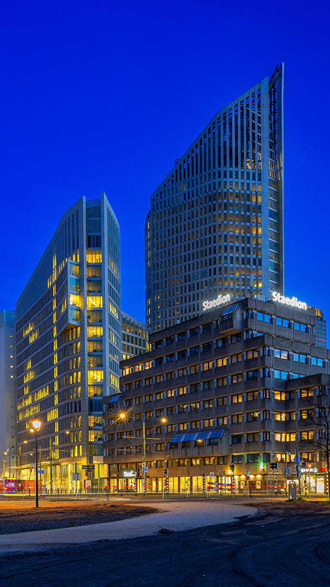 Edytor tapety: Oświetlone nocą domy w Hadze