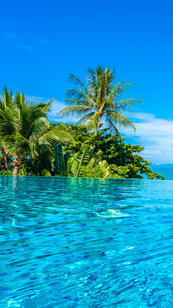 Edytor tapety: Widok z basenu na palmy