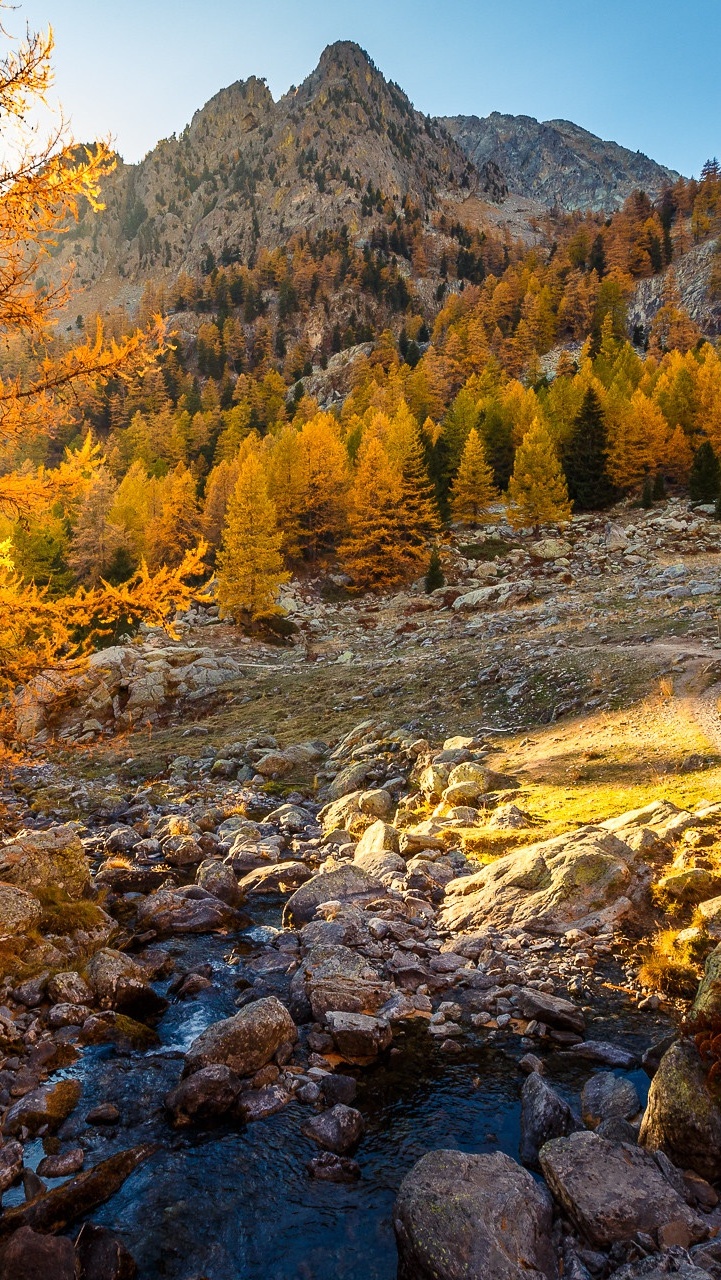 Edytor tapety: Pożółkłe modrzewie na zboczu góry