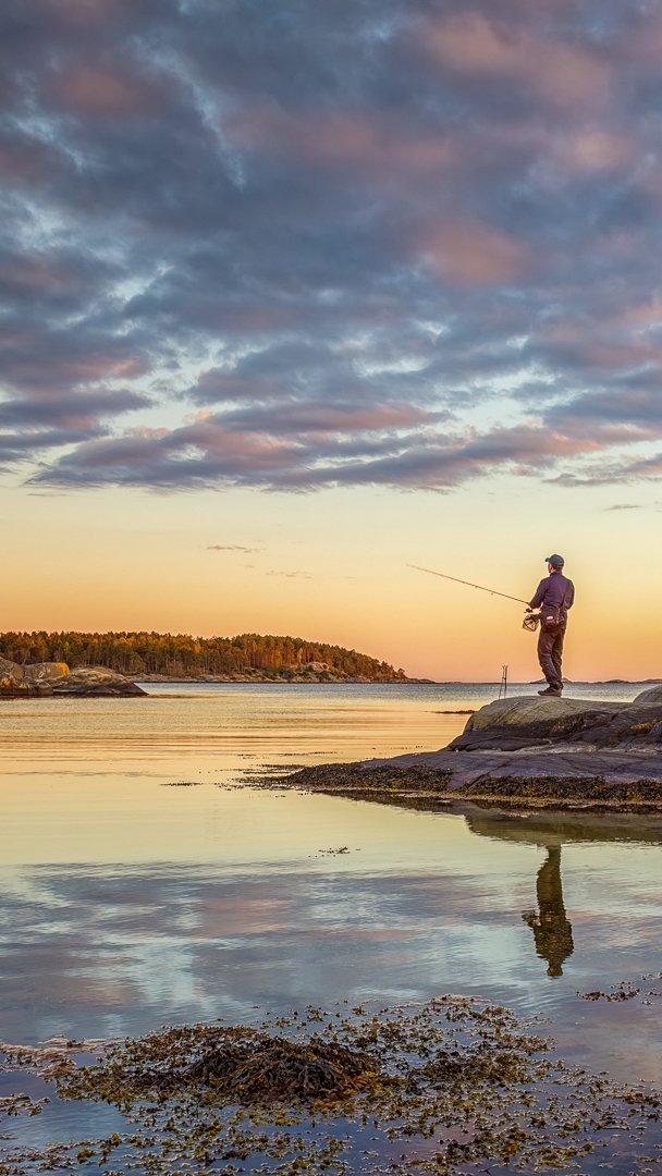 Edytor tapety: Wędkarz stojący na skale
