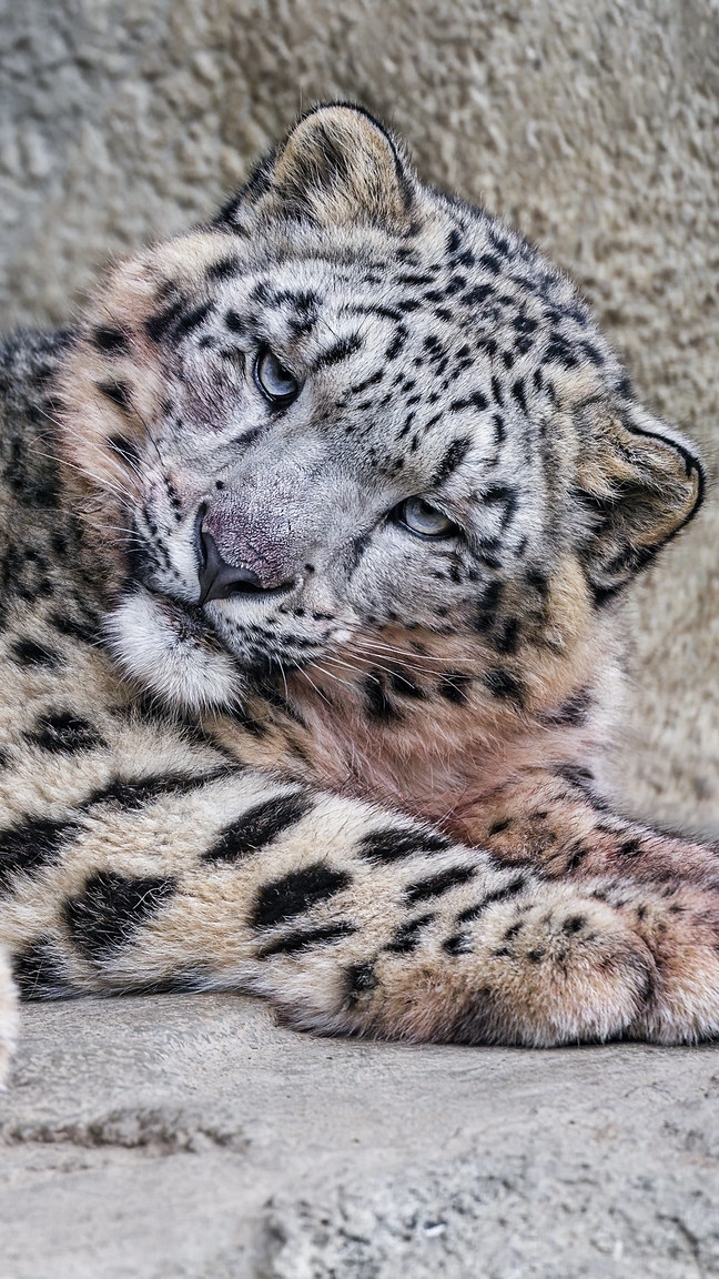 Edytor tapety: Leżący Irbis śnieżny na skale