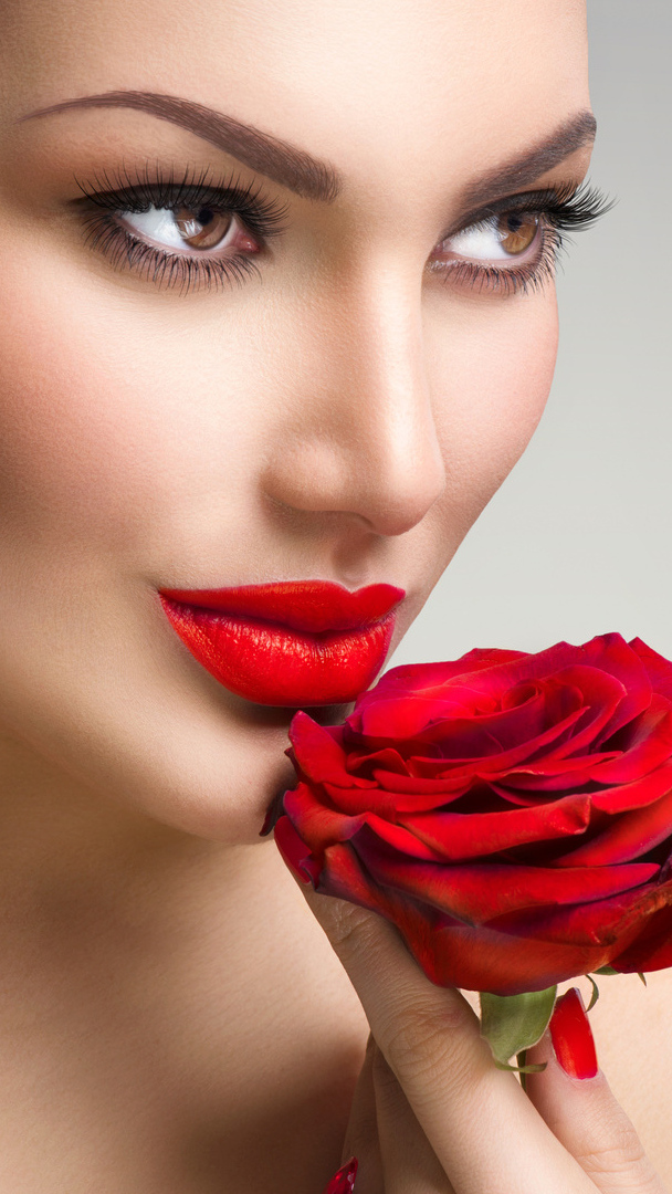 Edytor tapety: Uśmiechnięta kobieta z czerwoną różą