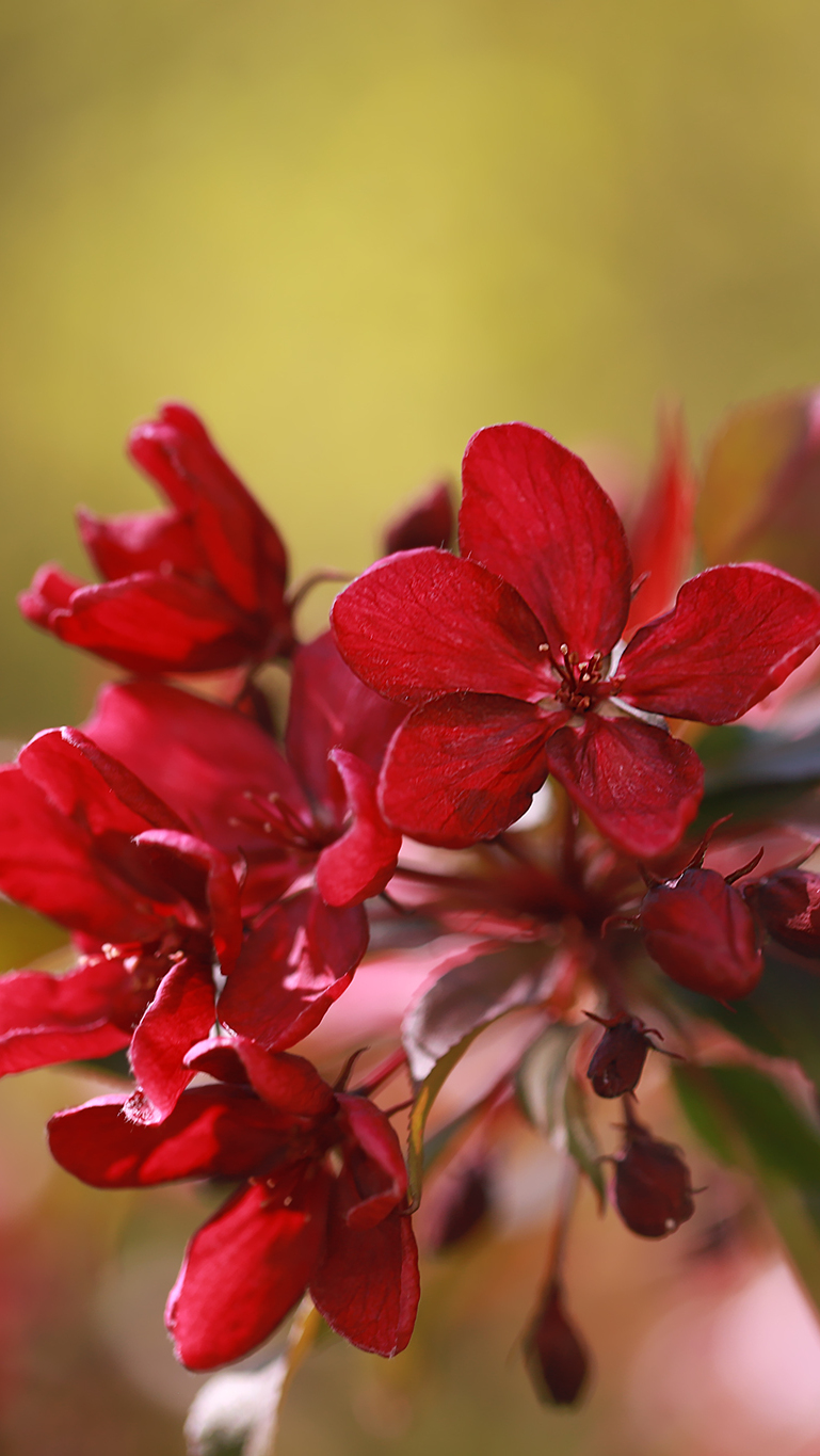 Edytor tapety: Czerwone kwiaty jabłoni w zbliżeniu