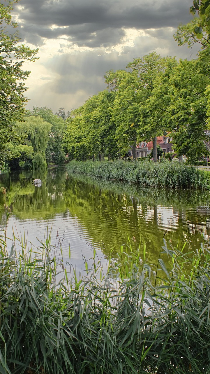 Edytor tapety: Chmury nad drzewami i rzeką