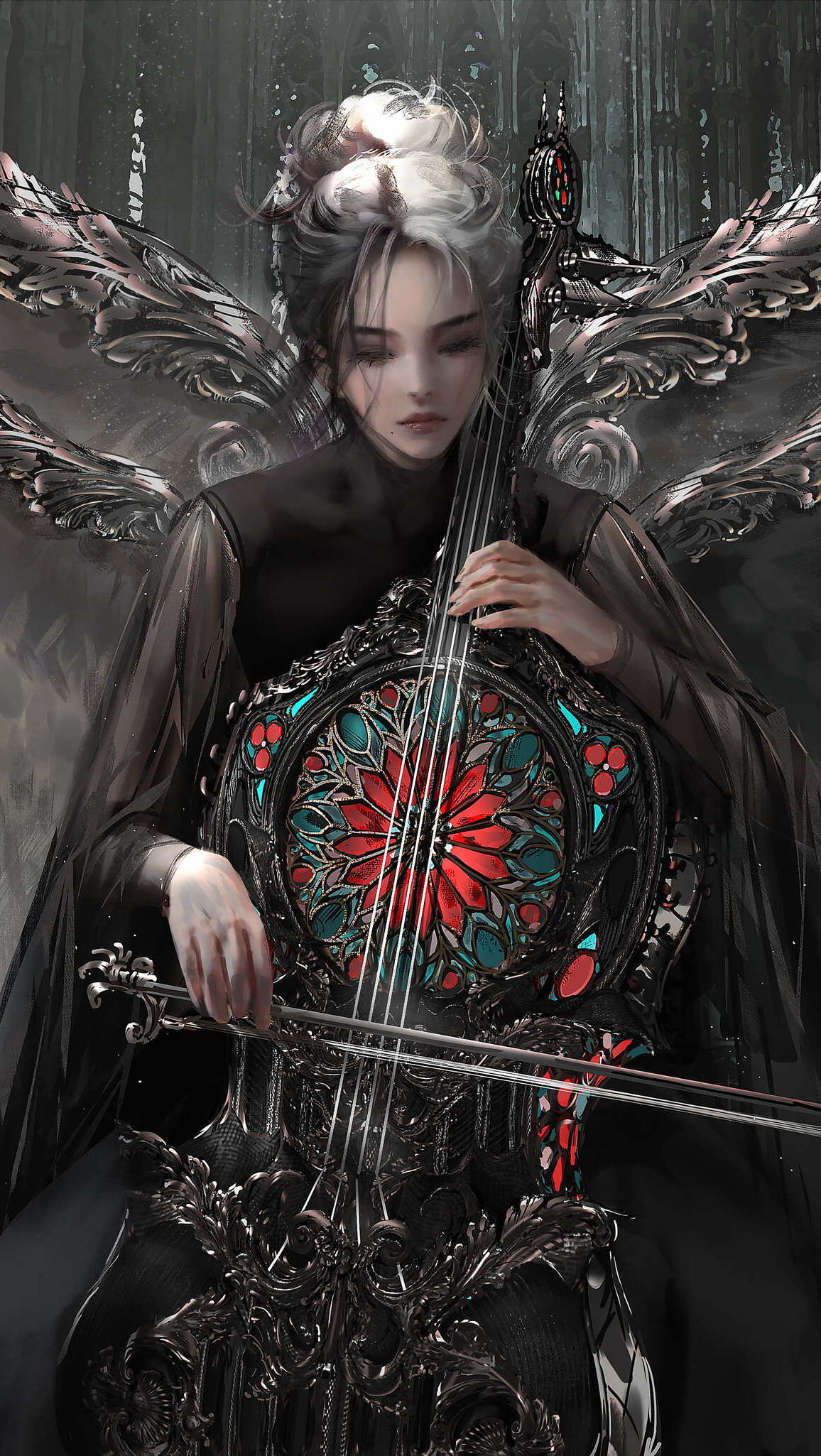 Edytor tapety: Kobieta z wiolonczelą w grafice