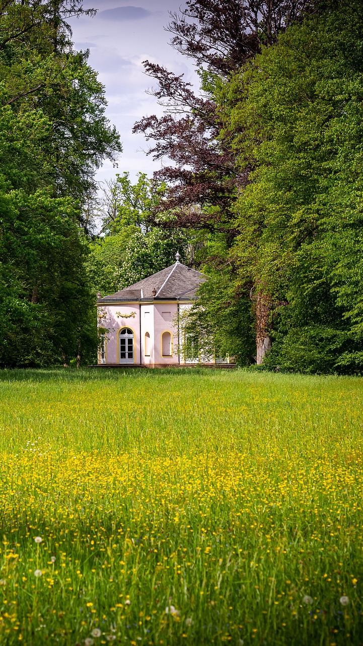 Edytor tapety: Dom za drzewami w parku