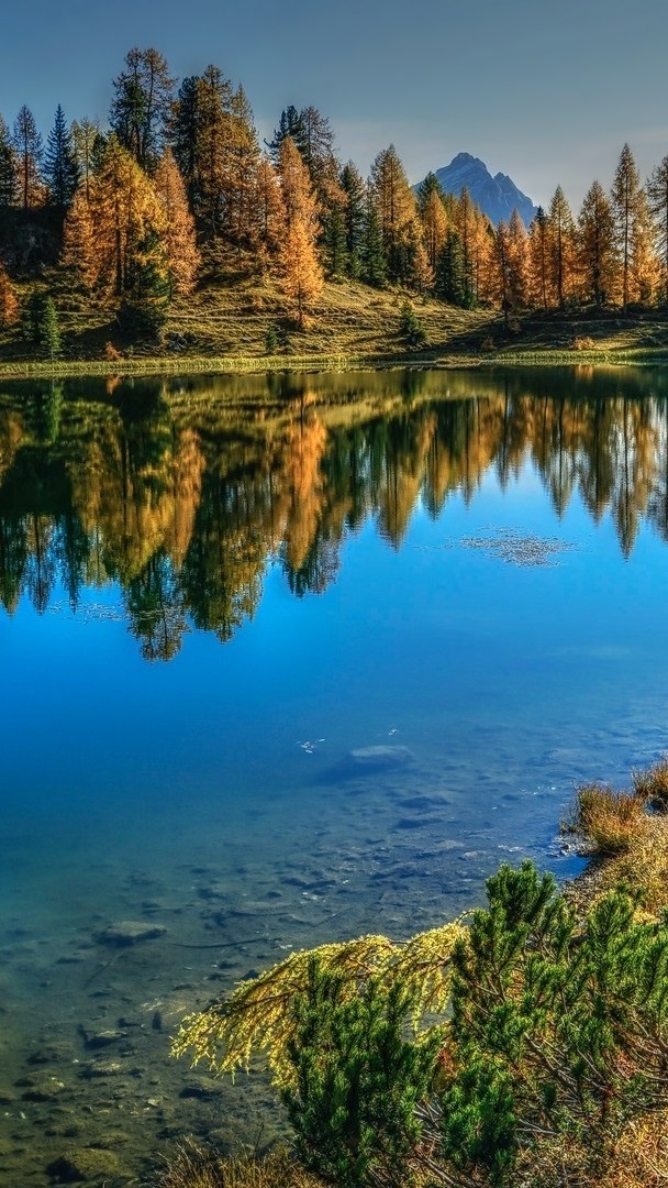 Edytor tapety: Pożółkłe modrzewie nad jeziorem Lago Federa