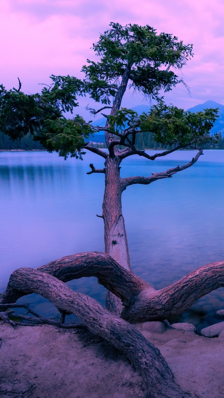 Edytor tapety: Drzewo nad jeziorem Maligne Lake