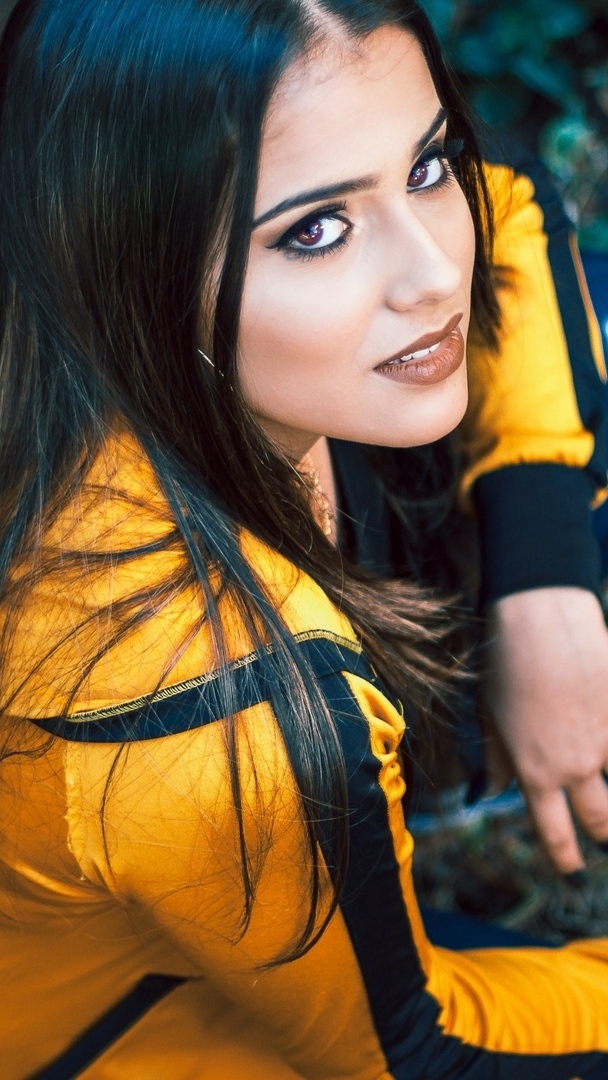 Edytor tapety: Dziewczyna w żółtej kurtce