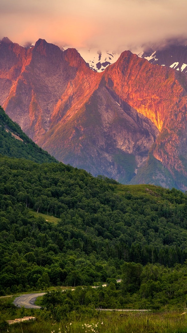 Edytor tapety: Lasy i góry Sunnmore w Norwegii