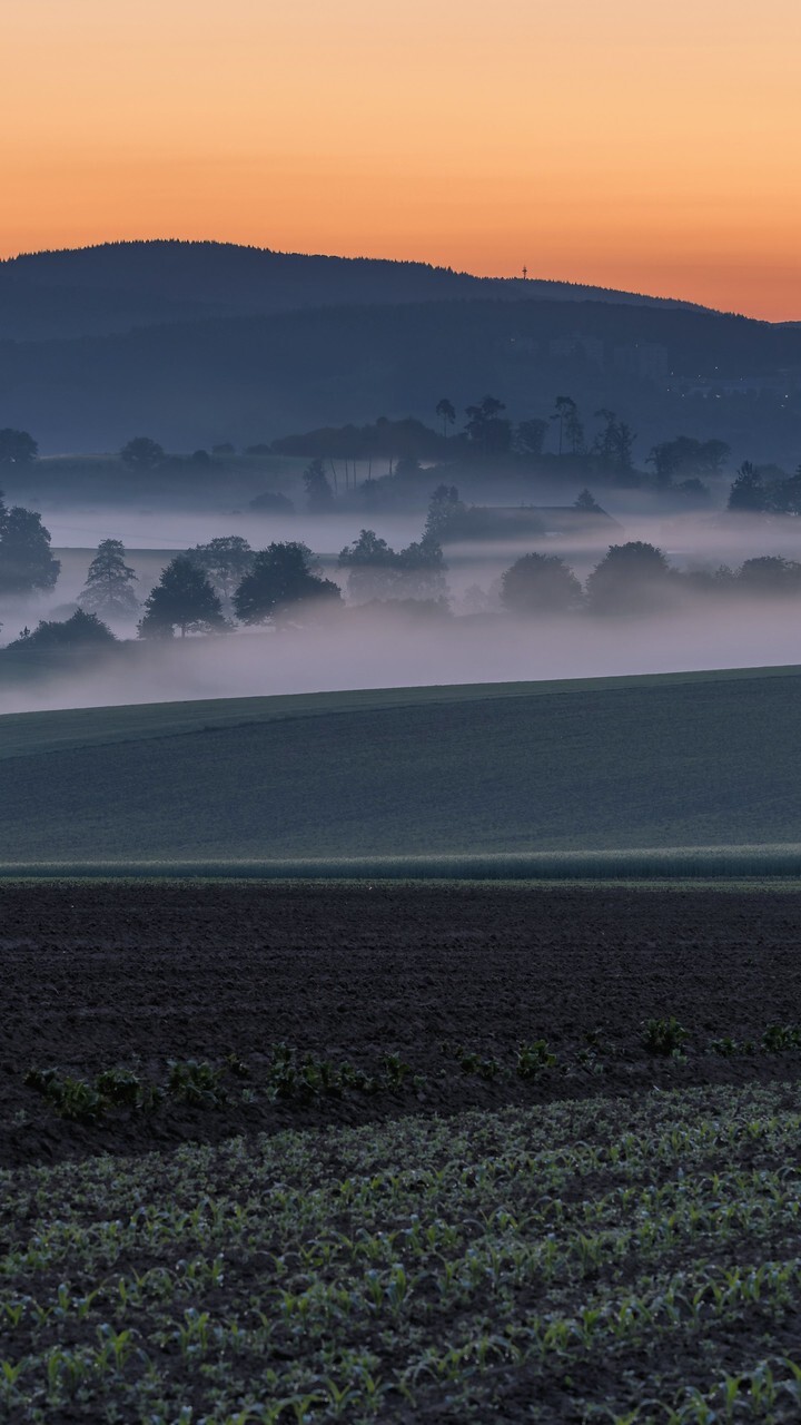 Edytor tapety: Poranna mgła nad polami