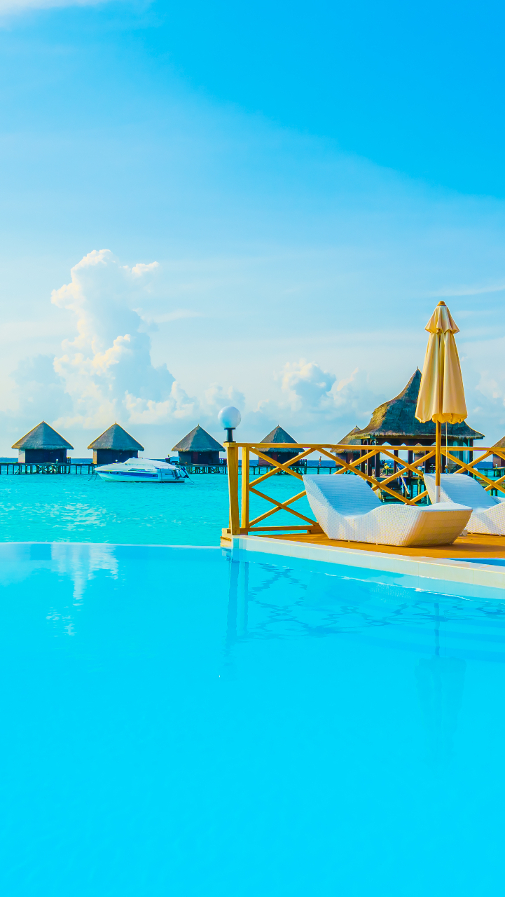 Edytor tapety: Leżaki na pomoście nad basenem