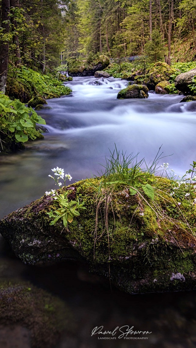 Edytor tapety: Omszałe kamienie na leśnej rzece