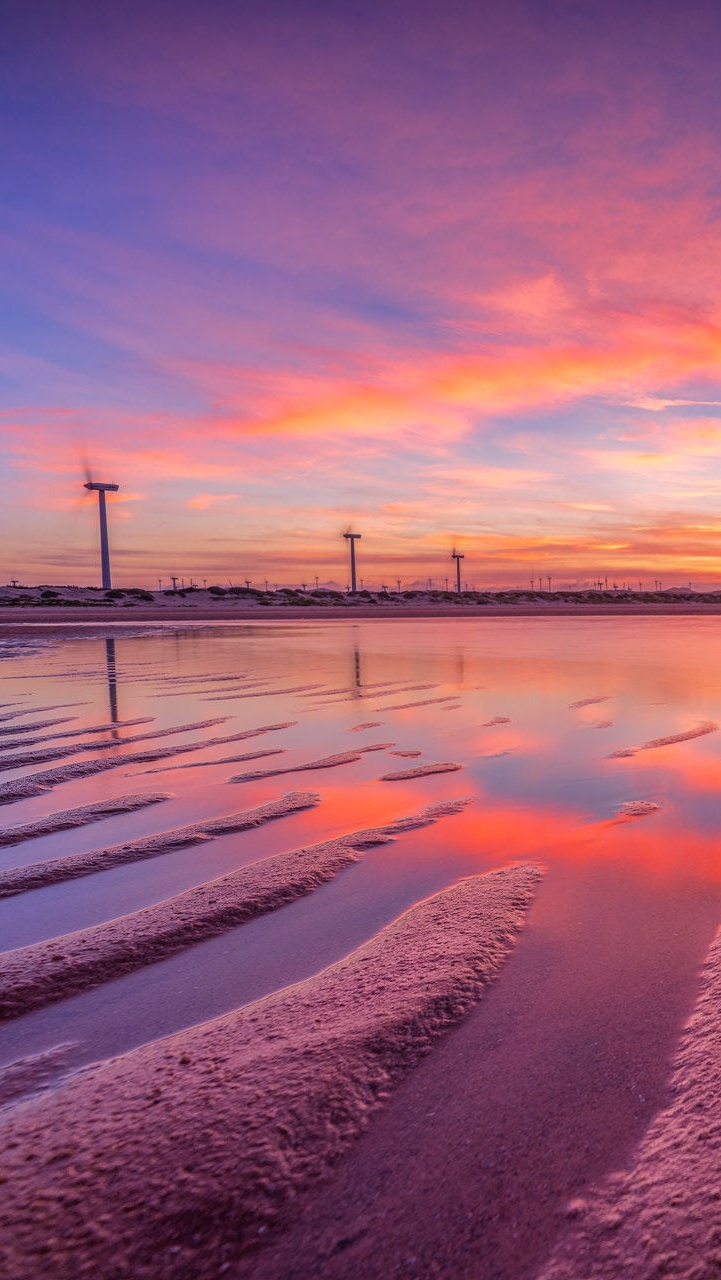 Edytor tapety: Wiatraki pod kolorowym niebem