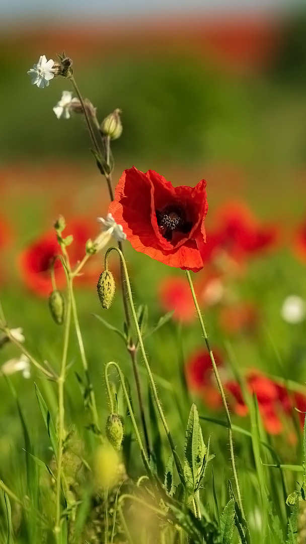 Edytor tapety: Maki z pąkami w trawie