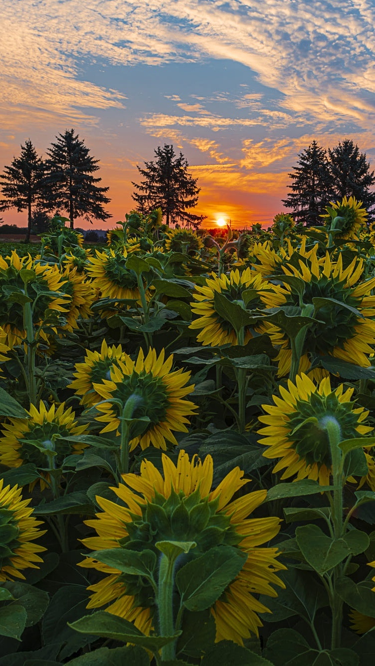 Edytor tapety: Zachód słońca nad słonecznikowym polem