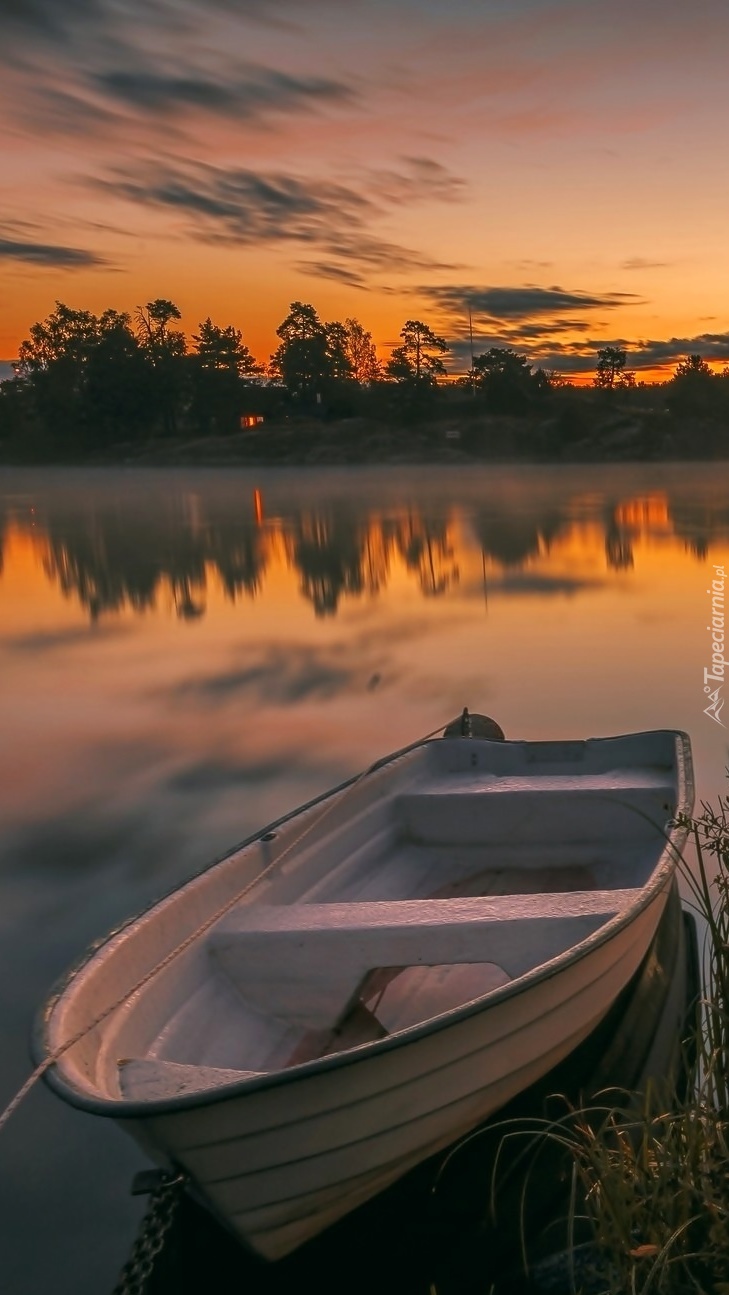 Edytor tapety: Łódka na jeziorze o zmierzchu