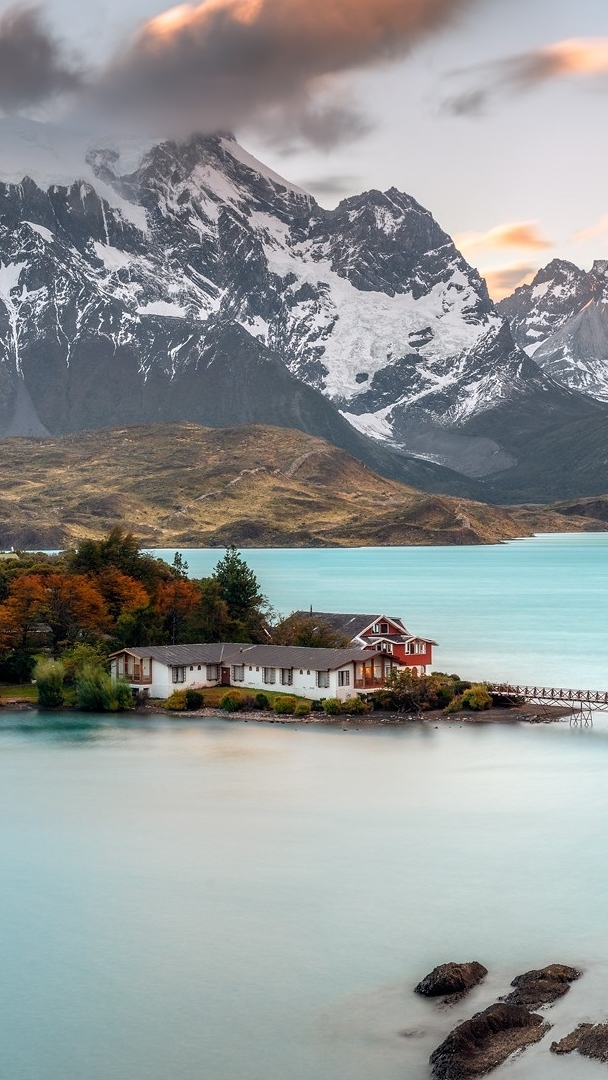 Edytor tapety: Dom nad jeziorem Lago Pehoe