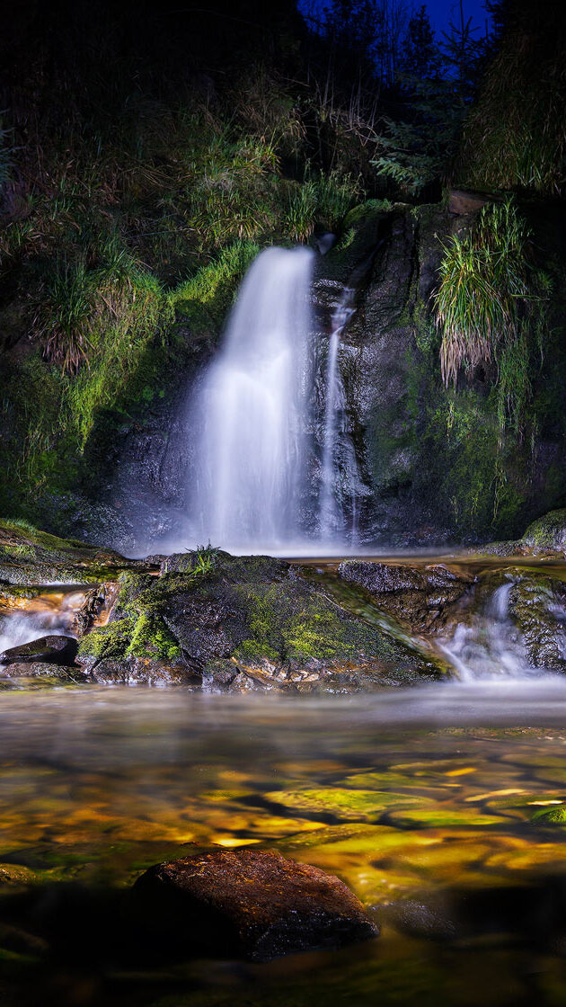 Edytor tapety: Rośliny przy wodospadzie nad stawem
