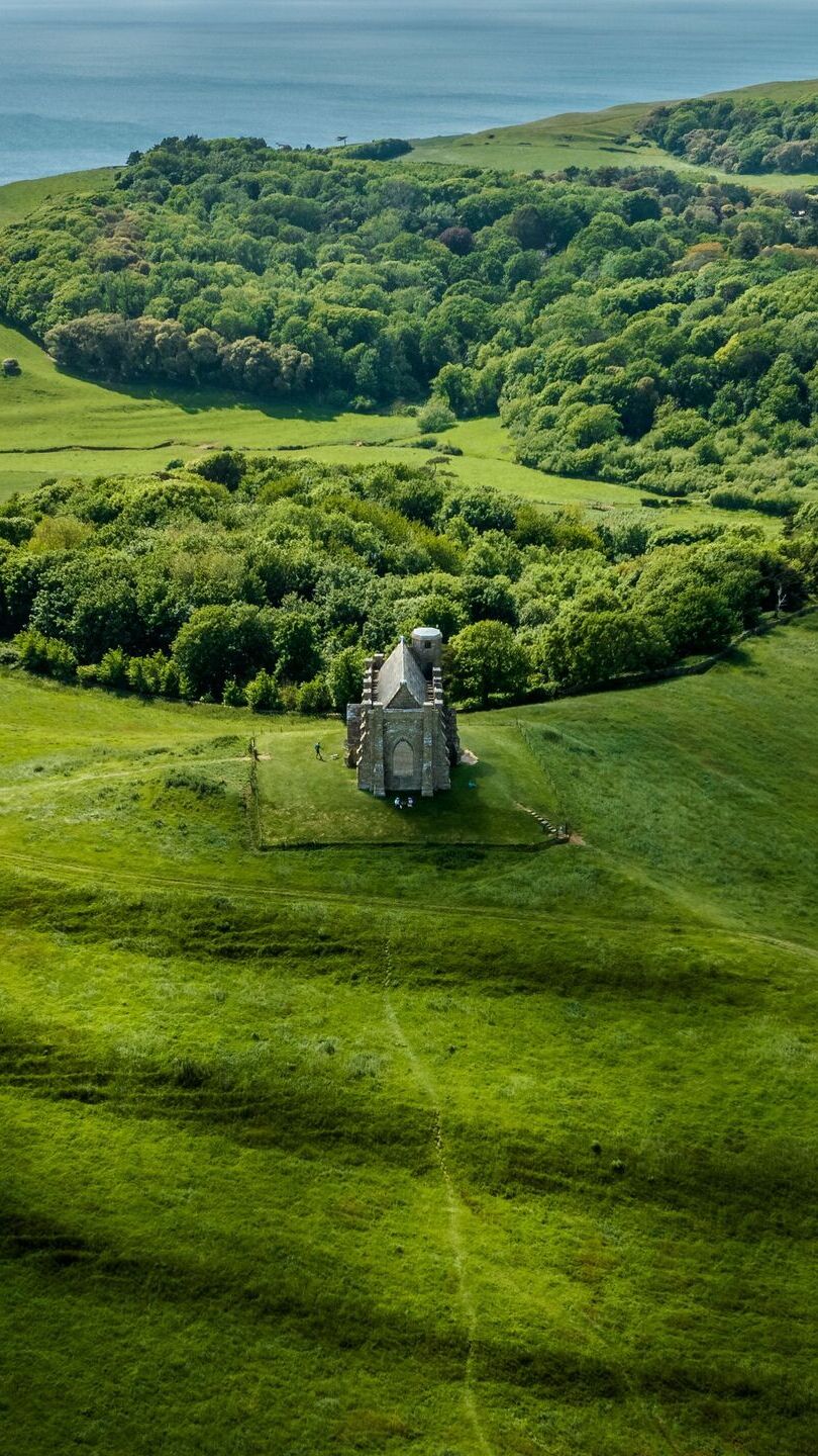 Edytor tapety: Zamek i drzewa na wzgórzu