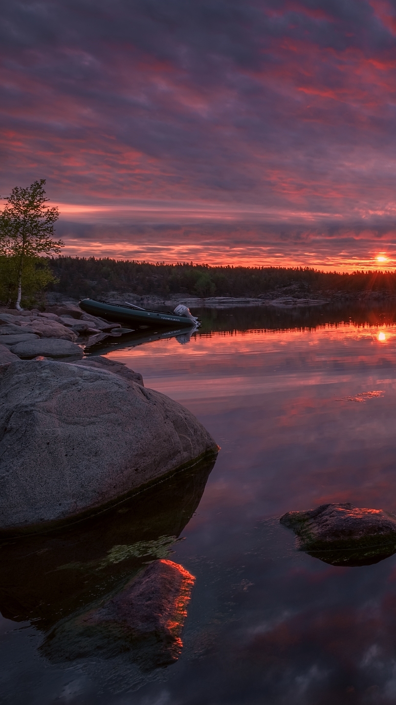 Edytor tapety: Zachód słońca nad jeziorem ładoga