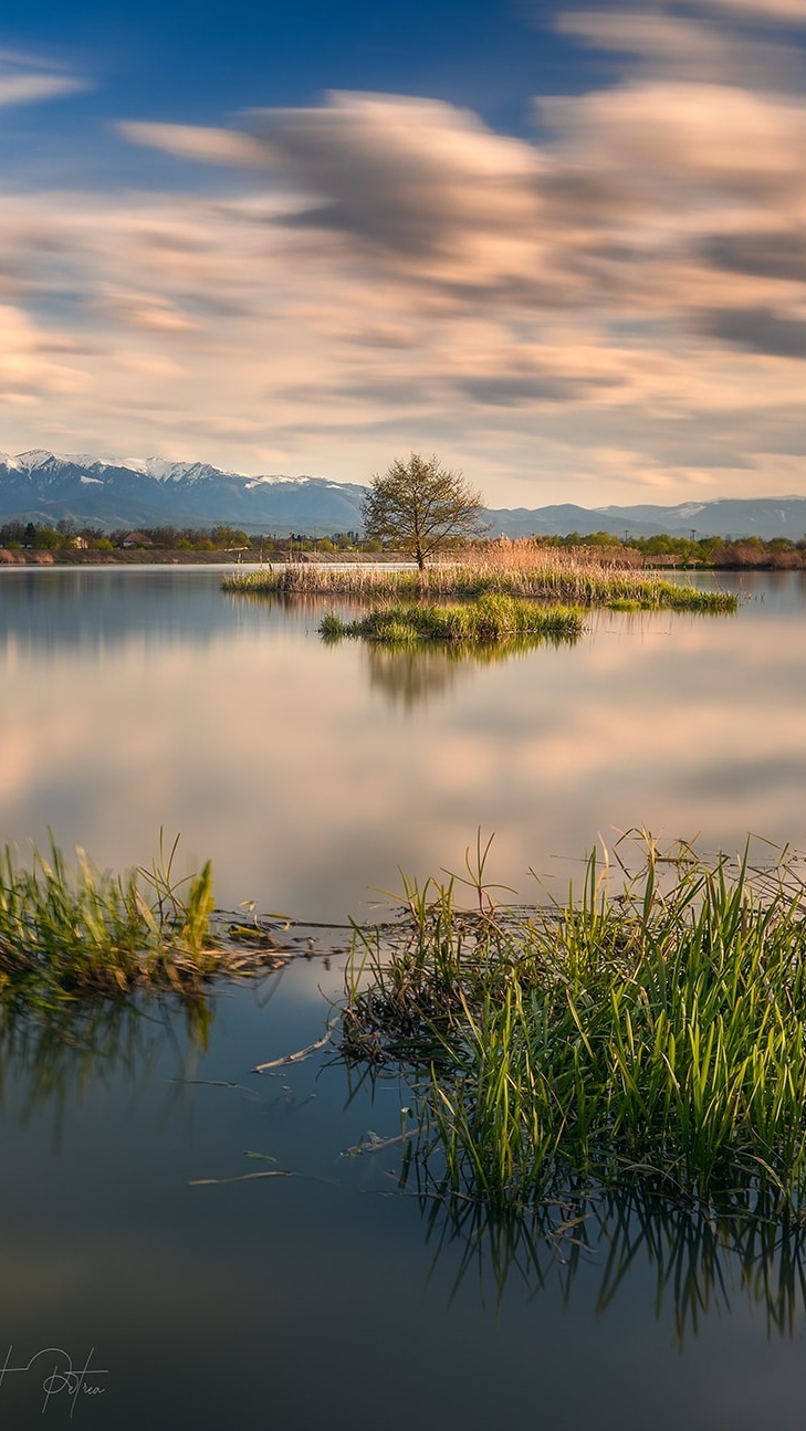 Edytor tapety: Drzewo i szuwary w jeziorze