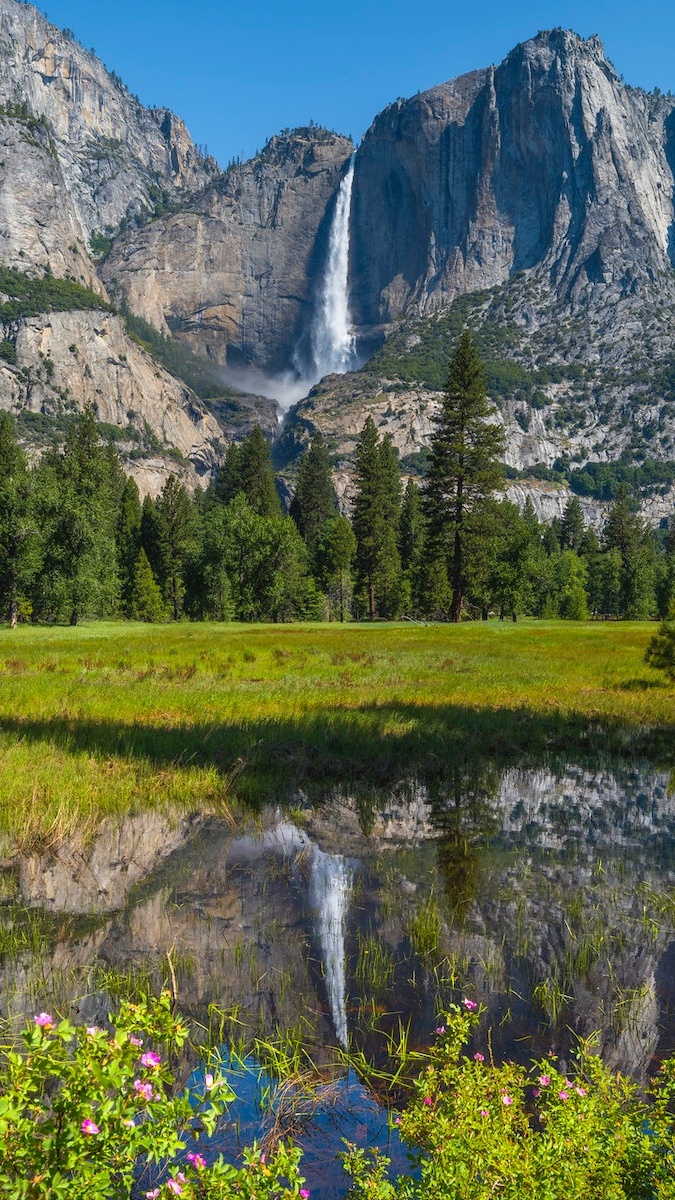 Edytor tapety: Wodospad Upper Yosemite na skałach