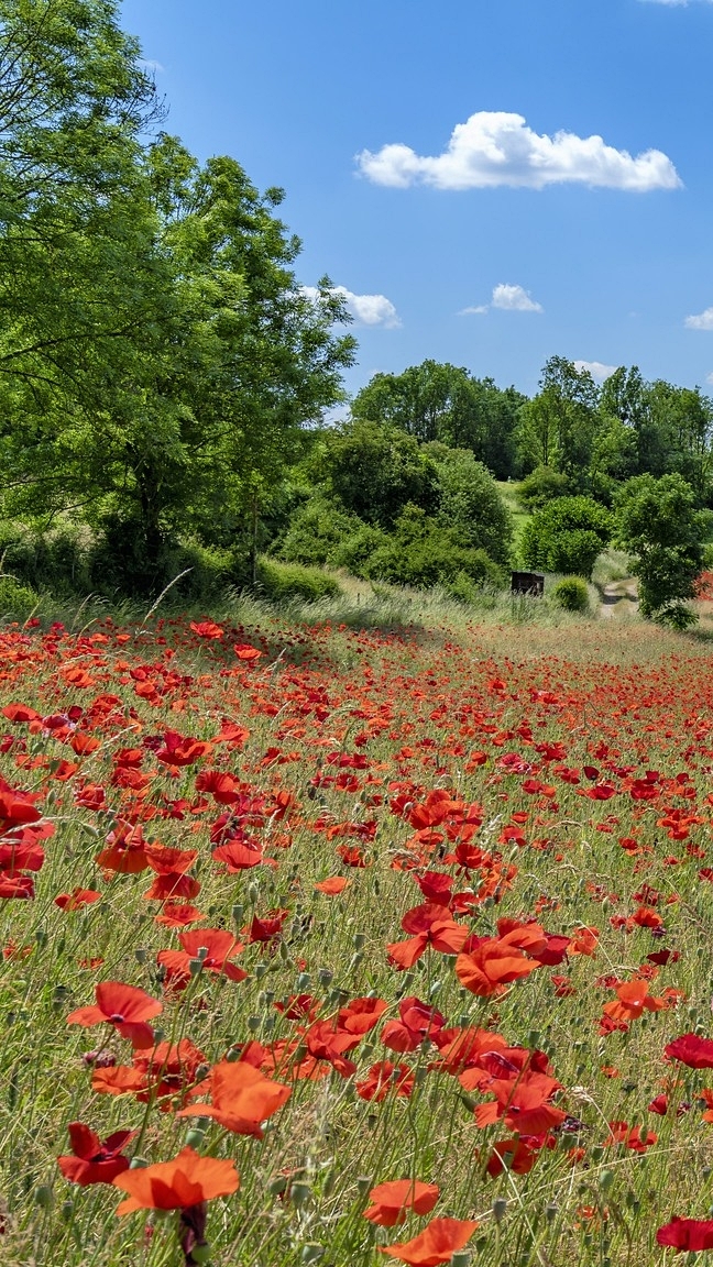 Edytor tapety: Maki i drzewa na łące
