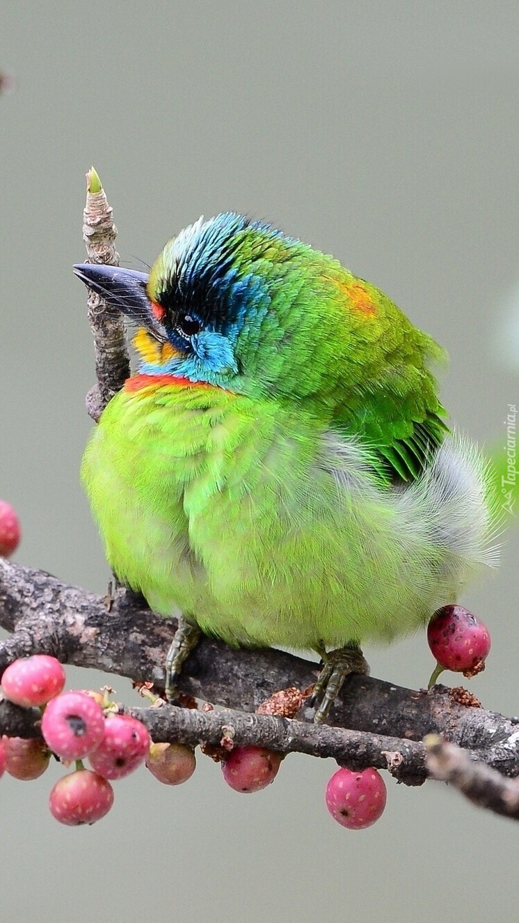 Edytor tapety: Kolorowy pierzaczek na gałęzi