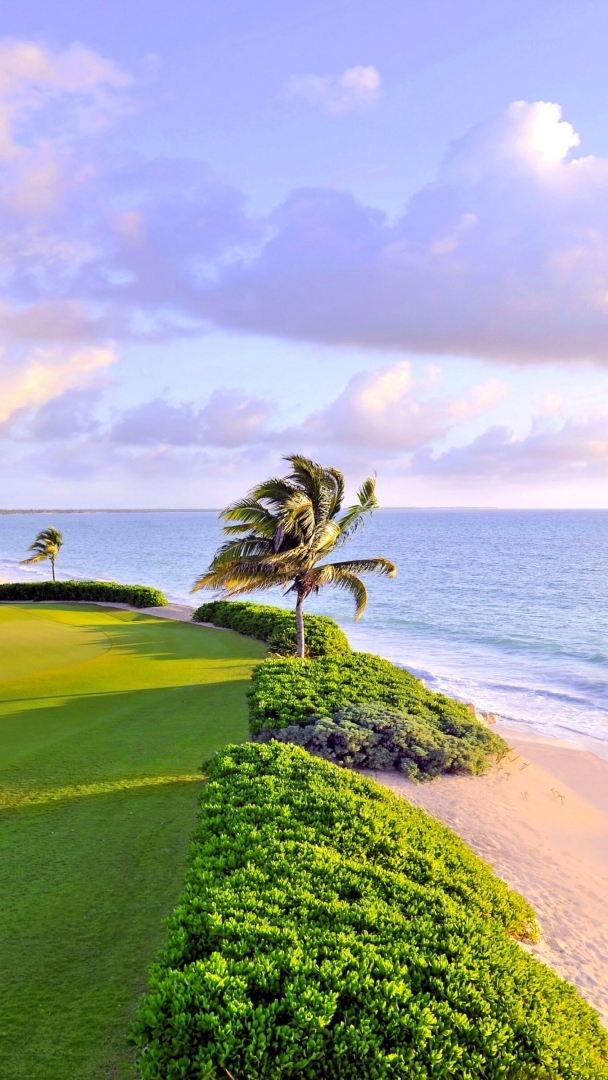Edytor tapety: Palmy i plaża nad morzem