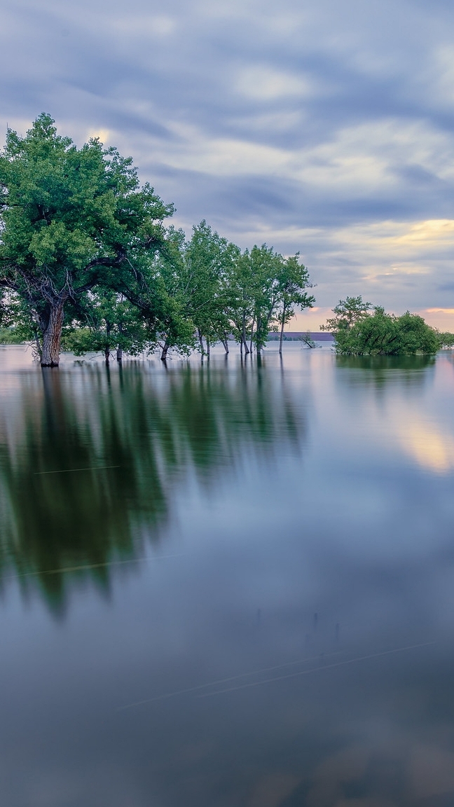 Edytor tapety: Zielone drzewa na jeziorze Chatfield Lake