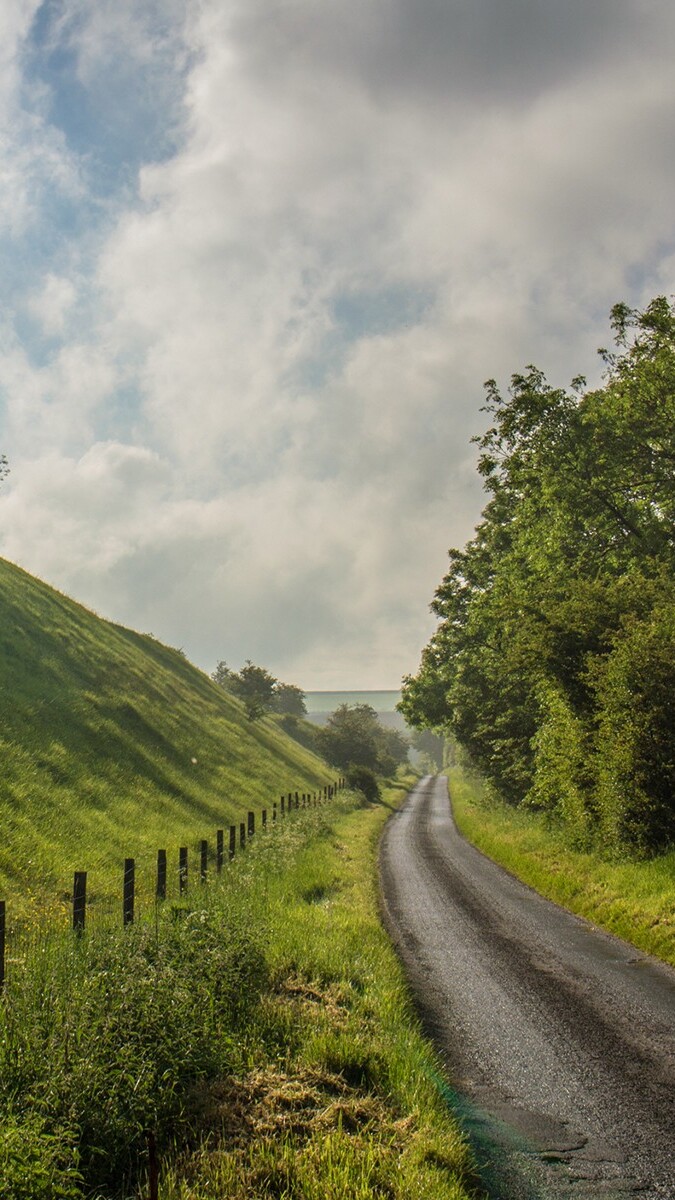 Edytor tapety: Przydrożne drzewa obok wzgórza
