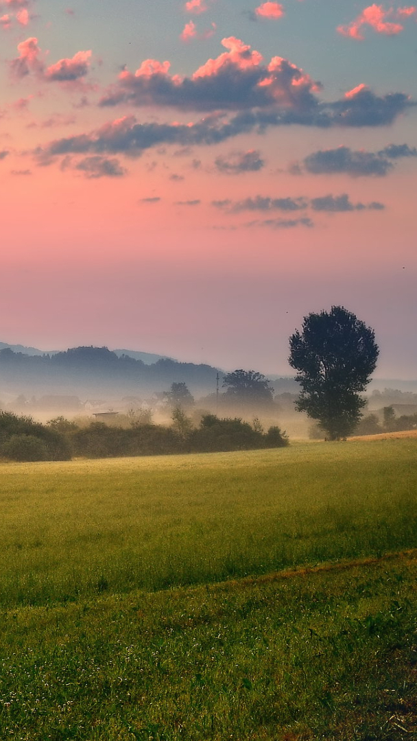 Edytor tapety: Pola i łąka we mgle