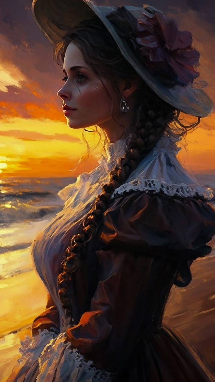 Edytor tapety: Kobieta z warkoczem w kapeluszu