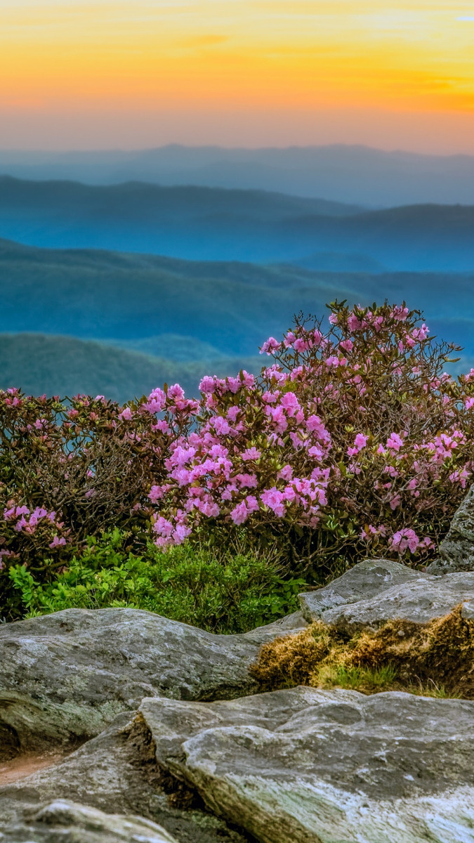 Edytor tapety: Azalie i zamglone góry