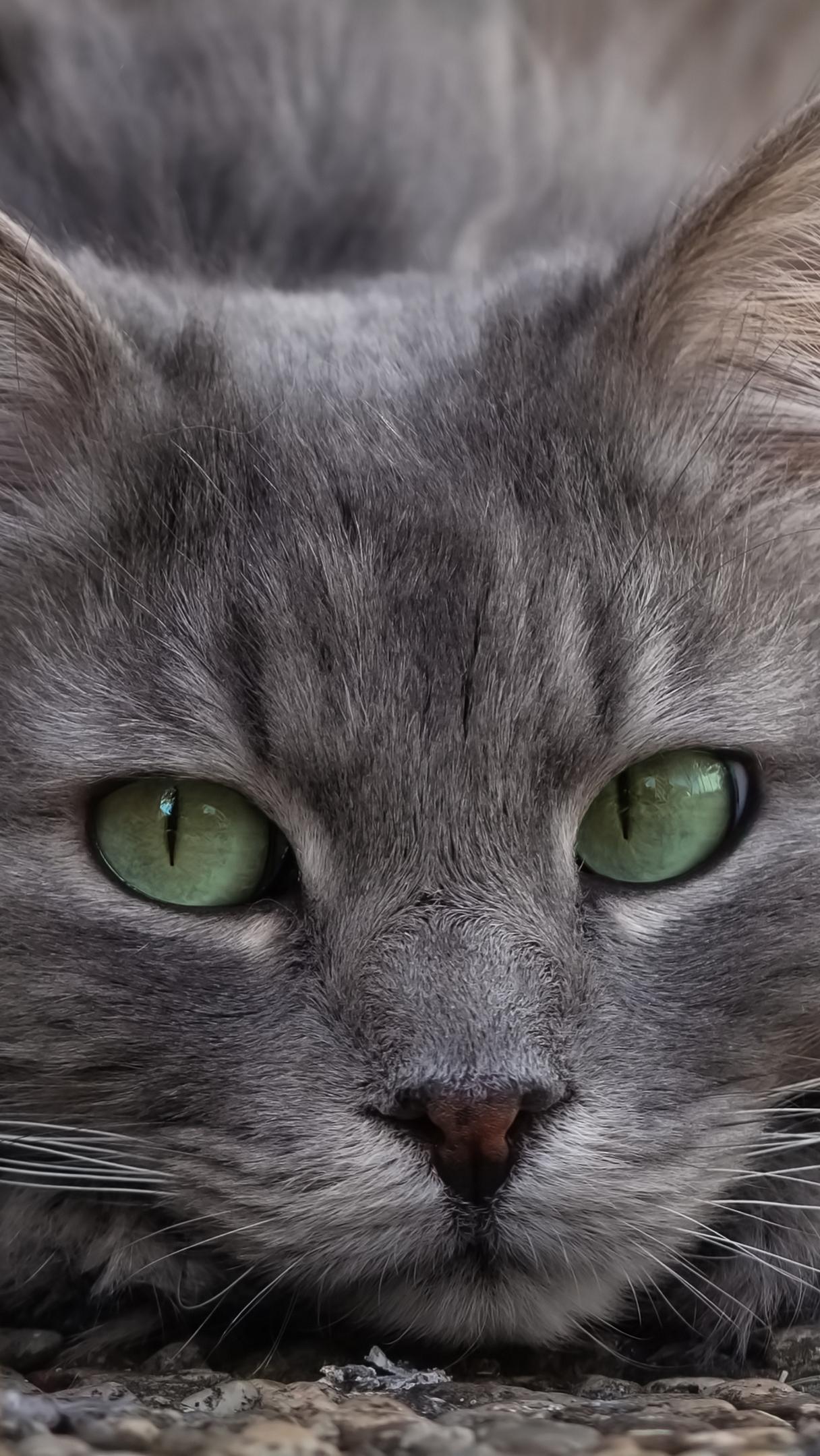 Edytor tapety: Głowa szarego zielonookiego kota