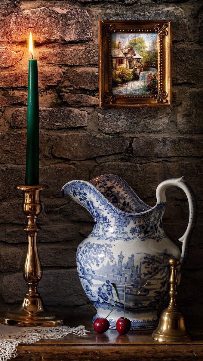 Edytor tapety: Dzbanek obok świecy