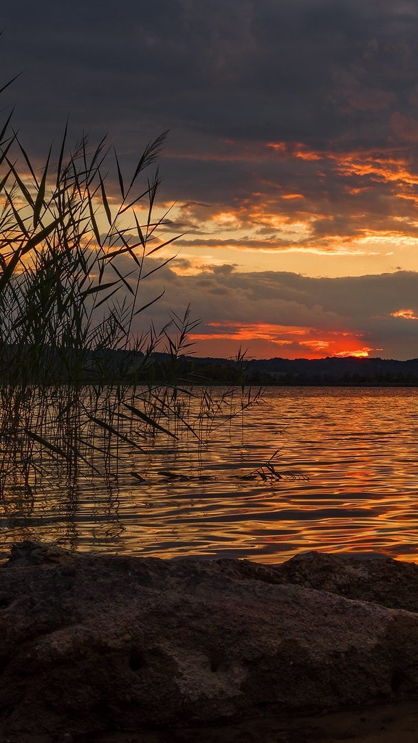 Edytor tapety: Zapadający zmierzch nad jeziorem