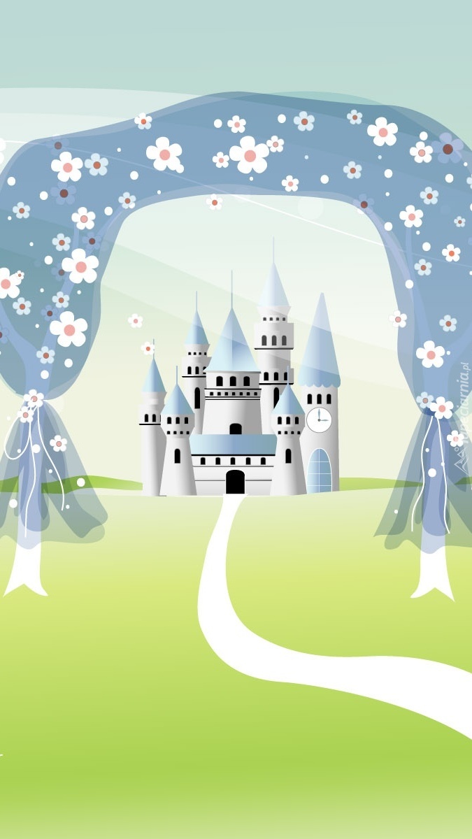 Edytor tapety: Kwiatowa brama do zamku z bajki