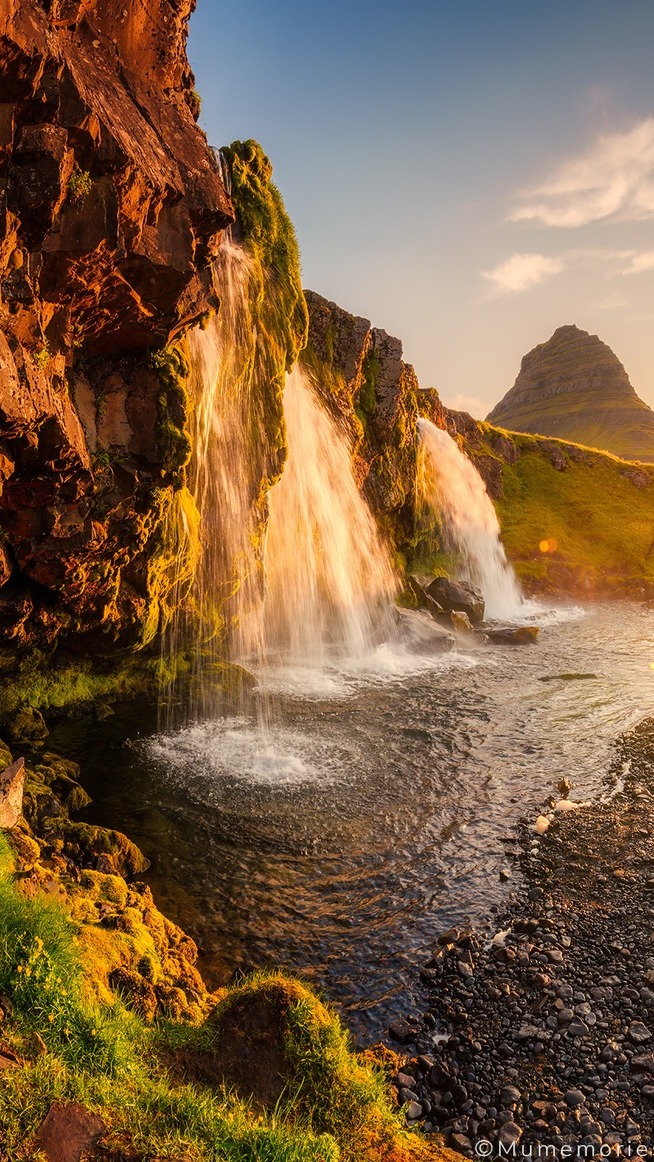 Edytor tapety: Wodospad Kirkjufell w słonecznym blasku