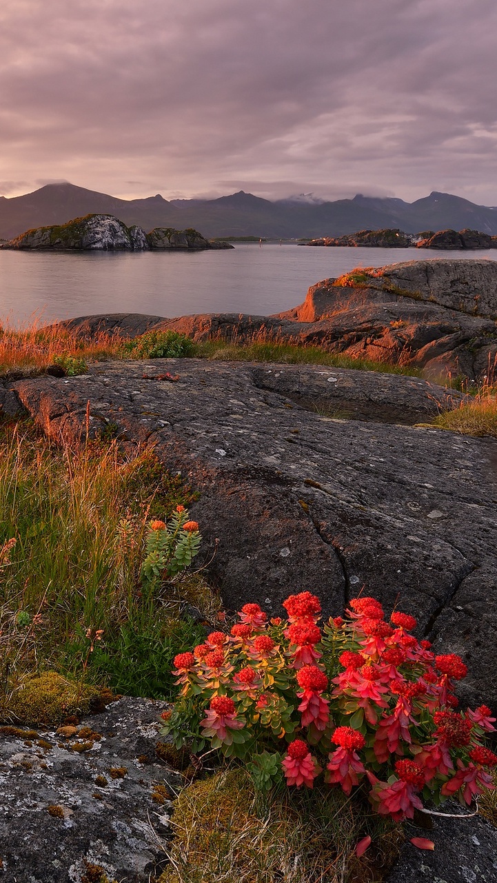Edytor tapety: Czerwone kwiaty na skałach