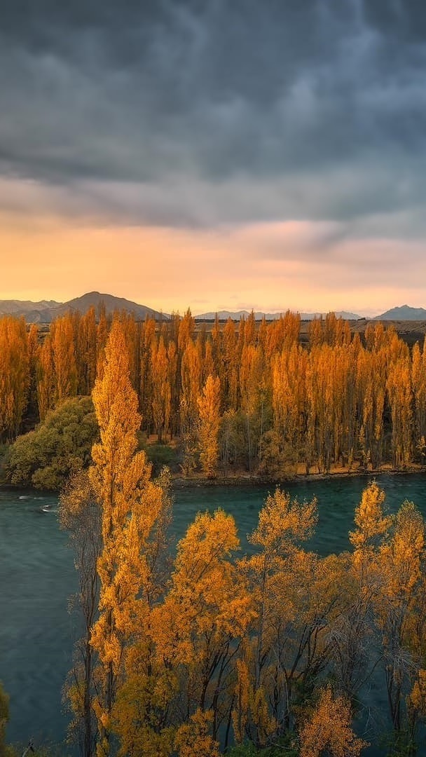 Edytor tapety: Pożółkłe drzewa nad rzeką