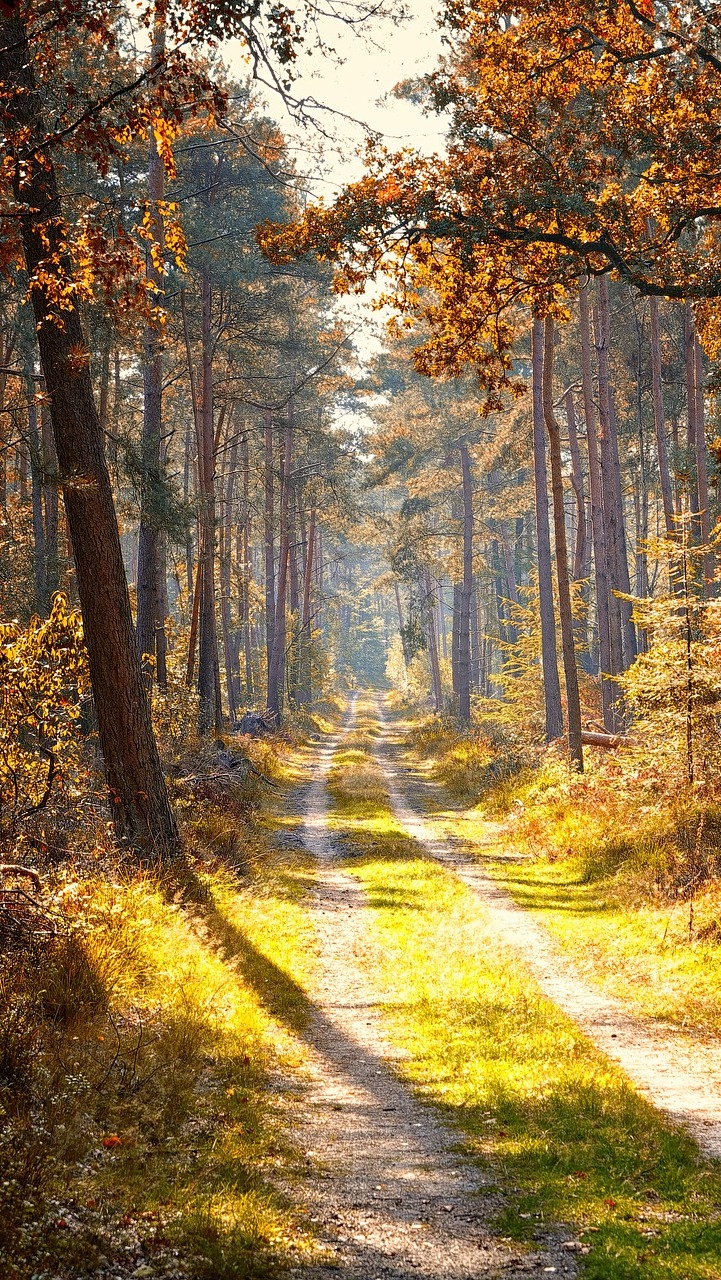 Edytor tapety: Rozświetlona ścieżka w lesie