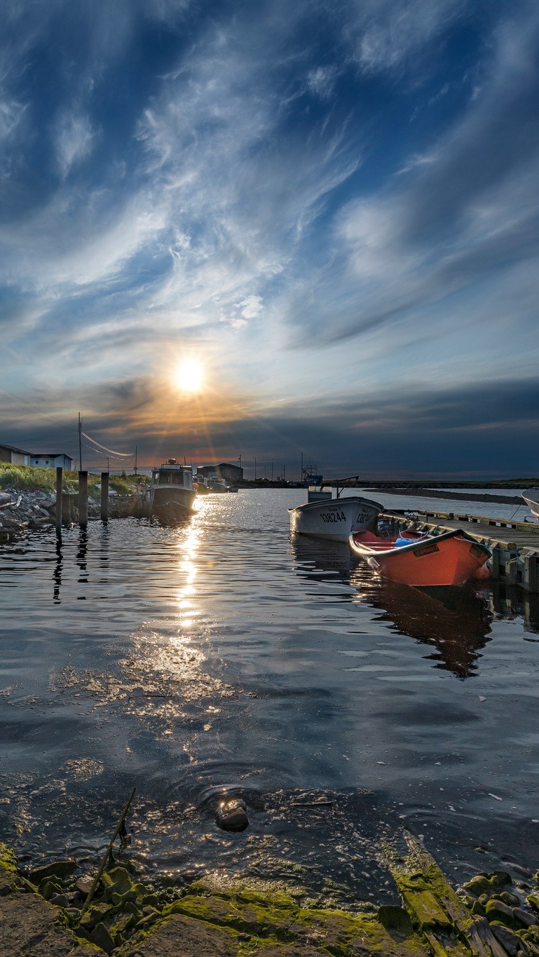 Edytor tapety: Łódki przy pomoście o zmierzchu